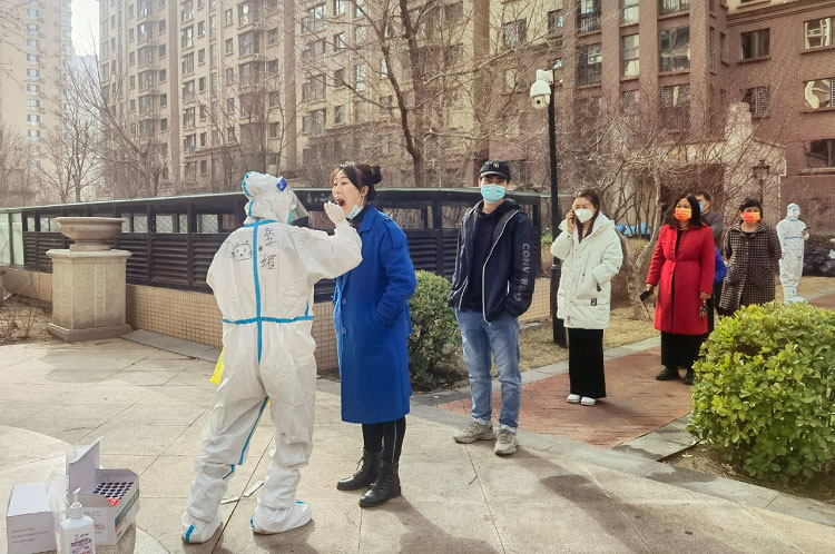 疫情初期每天都是入戶檢測,32層樓,共計200多人的檢測耗時接近一天。每天除了爬樓和不能坐的辛苦外,為了節(jié)省隔離服,大家都是不吃不喝不上廁所,天氣熱的時候全身濕透,天氣冷的時候凍的手都沒有知覺,雖然很辛苦,但大家依然在堅守。